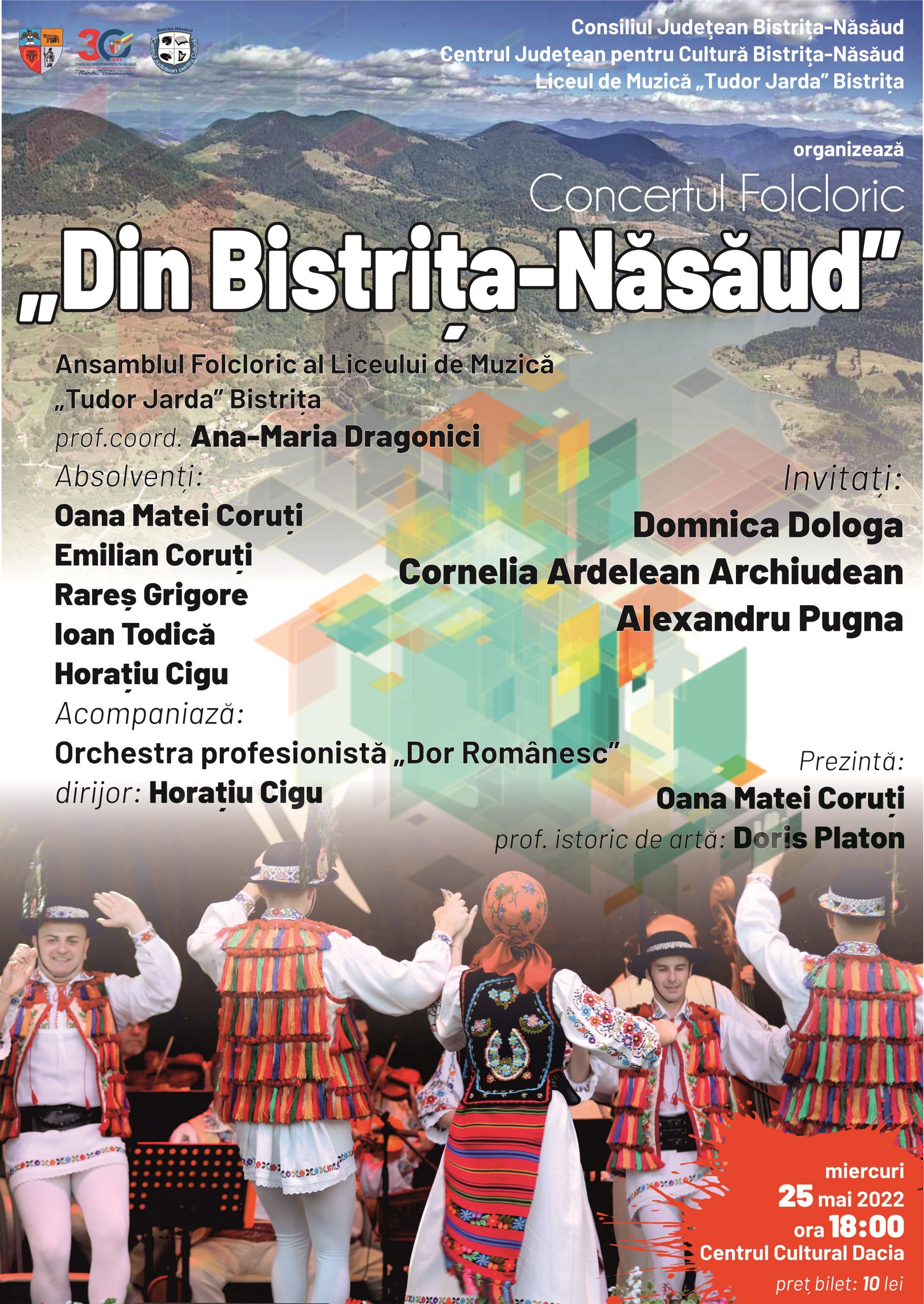 Consiliul Judeţean Bistriţa-Năsăud, Centrul Judeţean pentru Cultură Bistriţa-Năsăud și Liceul de Muzică „Tudor Jarda” Bistrița vă invită la Concertul Folcloric…