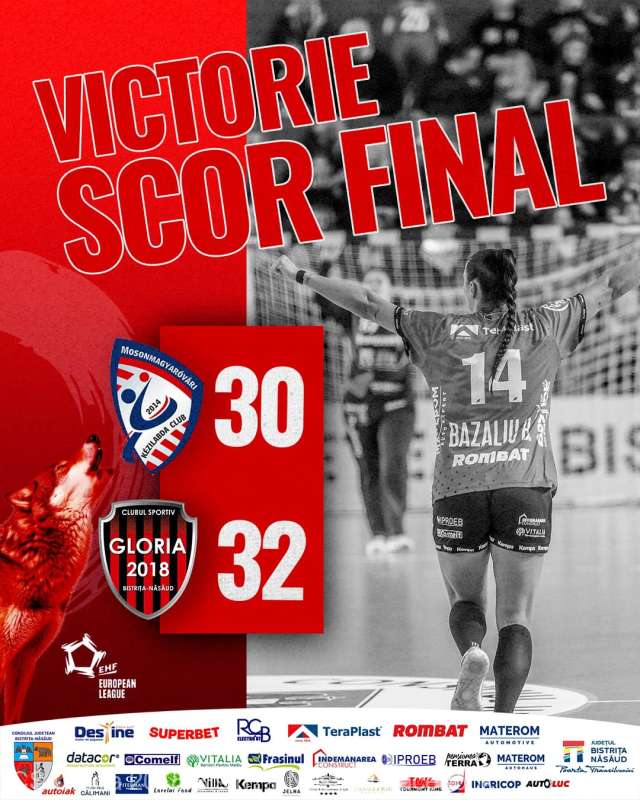 CS Gloria 2018 Bistriţa-Năsăud a învins echipa maghiară Motherson Mosonmagyarovari KC cu scorul de 32-30, sâmbătă seara, în deplasare, într-un meci din prima manşă a sferturilor de finală ale competiţiei feminine de handbal EHF European League. În prima repriză, Gloria a avut un avantaj de trei goluri, 13-10, iar la pauză avantajul echipei antrenate de…